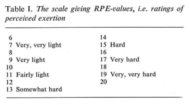 A parenthesis here: in his work Borg presented not only the scale that carries his name but also gave a formula for the maximal heart rate P as a function of age AP=195-0.75(A-20).